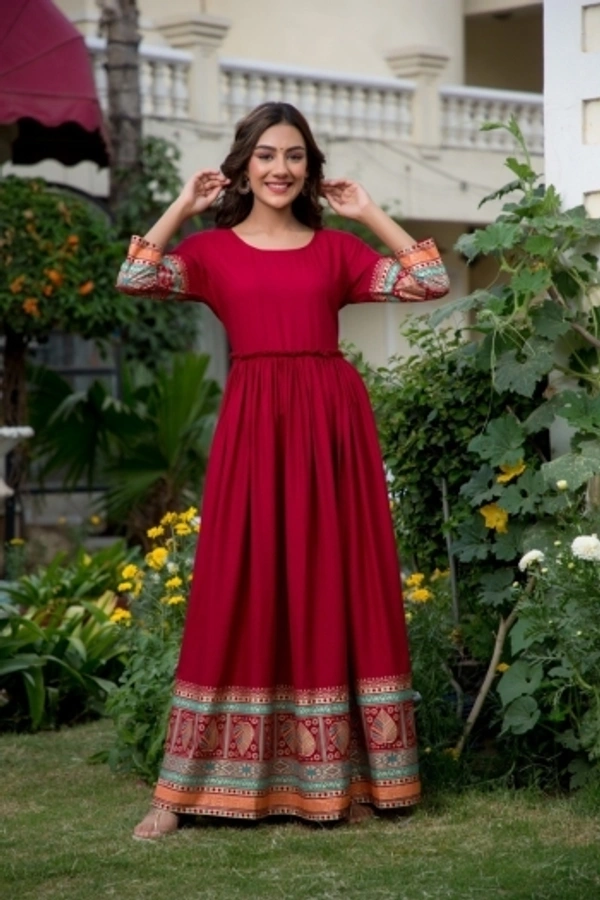 Women Floral Print Kurta Size: M, L, XL, XXL Brand :Saanvi Color :Maroon Color Code :Maroon fabric :Rayon Ideal For :Women Length Type :Ankle Length Neck Type :Round Hurry, Only 4 left!